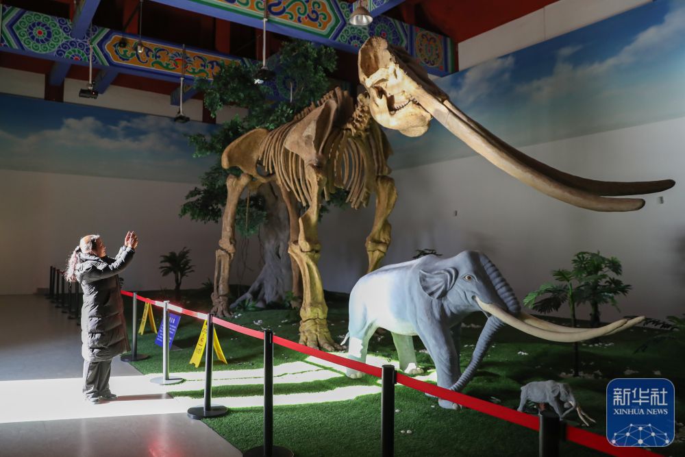 1月5日,在慶陽市合水縣隴東石刻藝術(shù)博物館黃河古象展廳,張雪峰拍攝黃河象化石(復制品)。