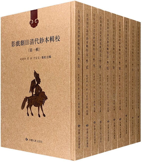 《影戲劇目清代鈔本輯校(第一輯)》(以下簡稱《影戲》),精裝全10冊,繁體豎排,260余萬字,2019年11月由甘肅人民出版社出版發(fā)行。該書為2018年國家古籍整理出版專項經費立項資助項目,由蘭州大學文學院退休教師趙建新教授、青年教師管弦共同點校輯錄并編纂出版。書中共收錄清代甘肅皮影戲傳世劇目60種,其中不乏甘肅影戲獨有的珍貴劇目,是對甘肅皮影戲劇目文獻的一次較大規(guī)模的搜集整理,也是歷年來對戲曲文獻進行搜集整理的著作中收錄隴影劇目最多的一部,在中國戲曲研究領域具有重要的藝術價值、版本價值和學術意義。
