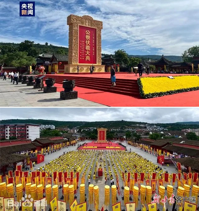 甘肅天水是伏羲的誕生地,自古以來就有祭祀伏羲的傳統(tǒng)。自1988年以來,每年6月夏至日舉辦的天水公祭伏羲大典,已成為海內外同胞尋根祭祖的重要平臺。2006年,“太昊伏羲祭典”被列入首批國家級非物質文化遺產名錄。2014年起,天水每年與臺灣地區(qū)同日同時舉行海峽兩岸共祭伏羲典禮。
