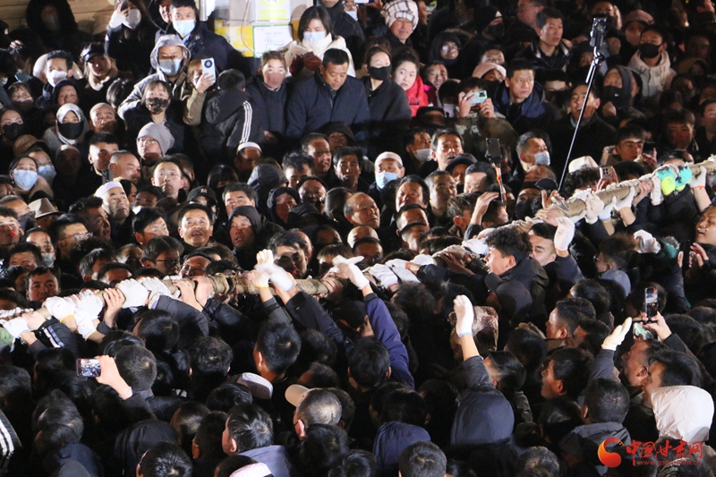 活動現(xiàn)場,一條長達1808米、重達16噸的巨繩橫貫西大街,其規(guī)模之宏大令人震撼?;顒佑谡率?、十五、十六日連續(xù)三個晚上舉行,每晚三局,共九局。