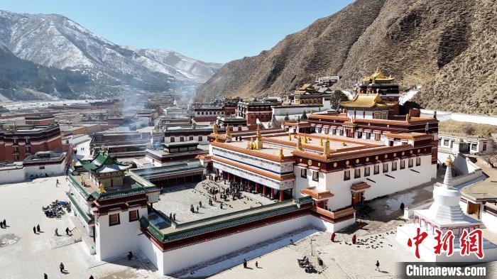 2月28日,航拍“世界藏學府”拉卜楞寺。(無人機照片)九美旦增 攝