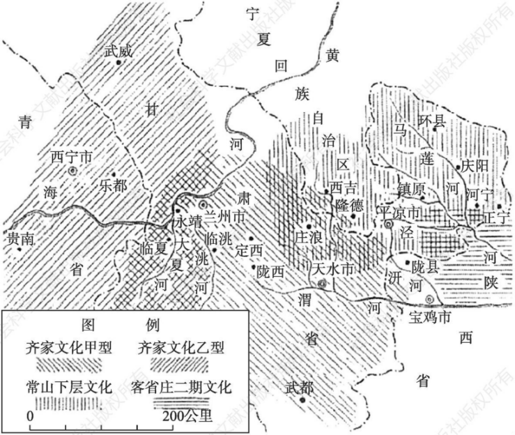 常山下層文化是黃河中上游新石器時(shí)代晚期的重要文化遺存,最早發(fā)現(xiàn)于甘肅省鎮(zhèn)原縣常山遺址而得名。胡謙盈先生認(rèn)為其主要分布在西北黃土高原東部的涇、渭兩河流域上游區(qū)域,其分布范圍東至子午嶺西側(cè),西至鳥鼠山東側(cè)的渭源縣,北至寧夏回族自治區(qū)南部,南至陜西省彬縣及甘肅天水地區(qū)南部。學(xué)界普遍認(rèn)為,它是由仰韶文化晚期發(fā)展而來,同時(shí)也是齊家文化的重要源頭之一。依據(jù)碳14測(cè)定,其年代約為公元前2930±180年,相對(duì)年代晚于仰韶文化,早于先周文化,是西北新石器時(shí)代晚期的文化紐帶,在研究中國史前文化演進(jìn)中占據(jù)重要地位。
