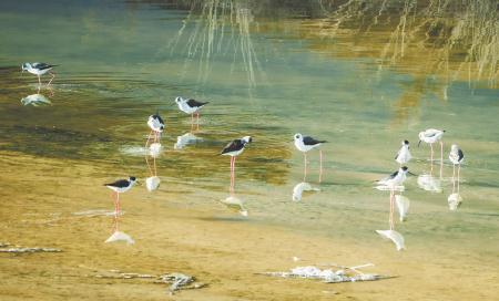 4月9日,一群黑翅長腳鷸在定西湖水面飛行。進(jìn)入4月,候鳥陸續(xù)北遷,定西湖成了眾多鳥群遷徙途中的歇腳補(bǔ)給地。新定西·定西日報(bào)記者 牛小棟 攝
