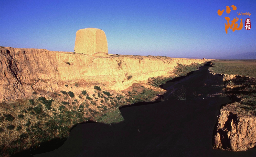 在黛藍色山脈的映襯下,漢明長城蜿蜒并行,高于地面的黃色城墻是明長城,而顏色稍深的壕溝是漢長城,兩條跨越千載的古長城最近處不過十余米,仿佛攜手講述著遠古的故事……它們也猶如兩位忠誠的衛(wèi)士,守護著這片古老的土地,也見證了絲綢之路的興衰變遷。