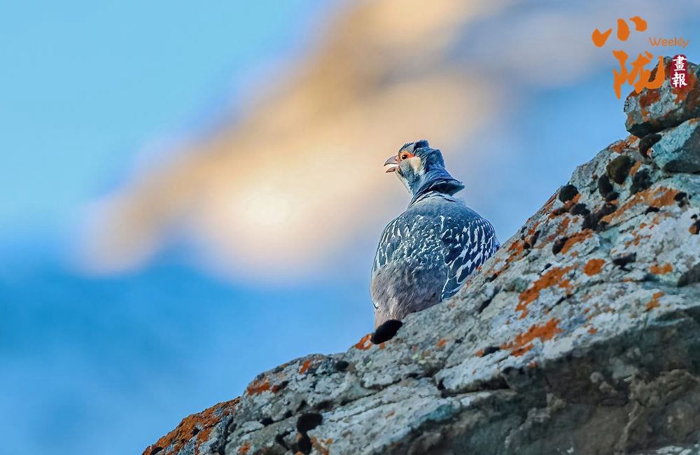 國家二級保護動物藏雪雞,又名“淡腹雪雞”或“貝母雞”。雌雄羽毛相似。嘴為黃色,腳為紅色。前額有一桔色臘膜,眼周裸皮為黃色。背部暗棕色,密布不規(guī)則的細斑。翼羽暗褐色,具有白色羽緣,初級飛羽為灰褐色,尾羽為深棕色,密布黑褐色點斑。胸、腹均有淡色與黑色相間的黑紋。