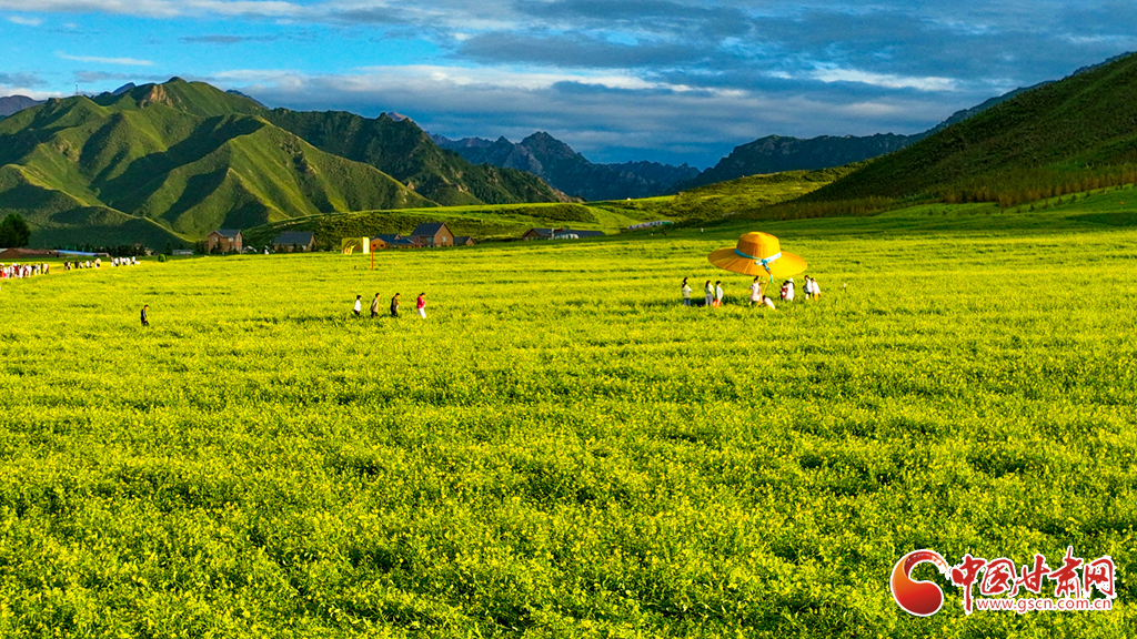 7月19日,張掖市民樂縣扁都口景區(qū)萬畝油菜花盛放。金黃的花海如巨毯鋪展,與草原綠野相接。微風輕拂,花浪層層涌動,空氣中彌漫著淡淡清香。藍天白云映襯下,景致美不勝收,成為河西走廊一道別致風景,吸引了眾多游客前來觀光。