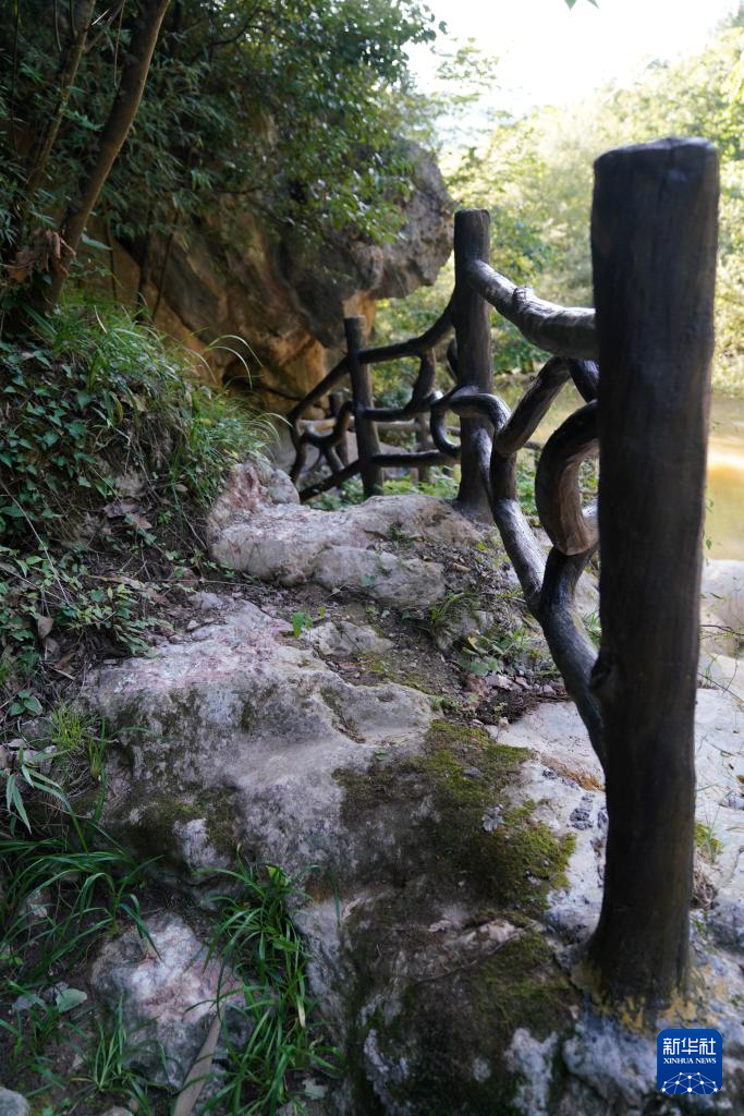 7月14日在青泥嶺拍攝的碥道遺存。新華社記者 陳斌 攝