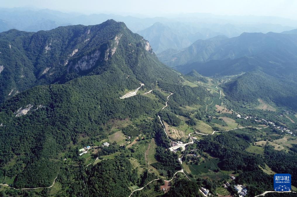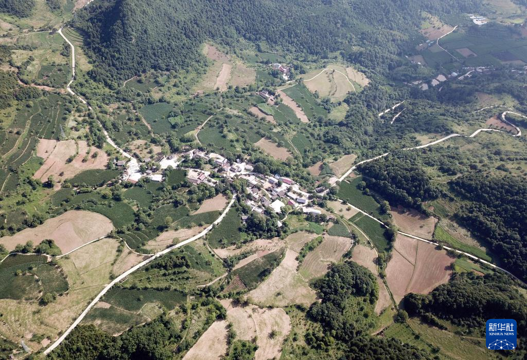 7月14日拍攝的青泥嶺上的村莊和鄉(xiāng)村道路(無(wú)人機(jī)照片)。新華社記者 馬寧 攝