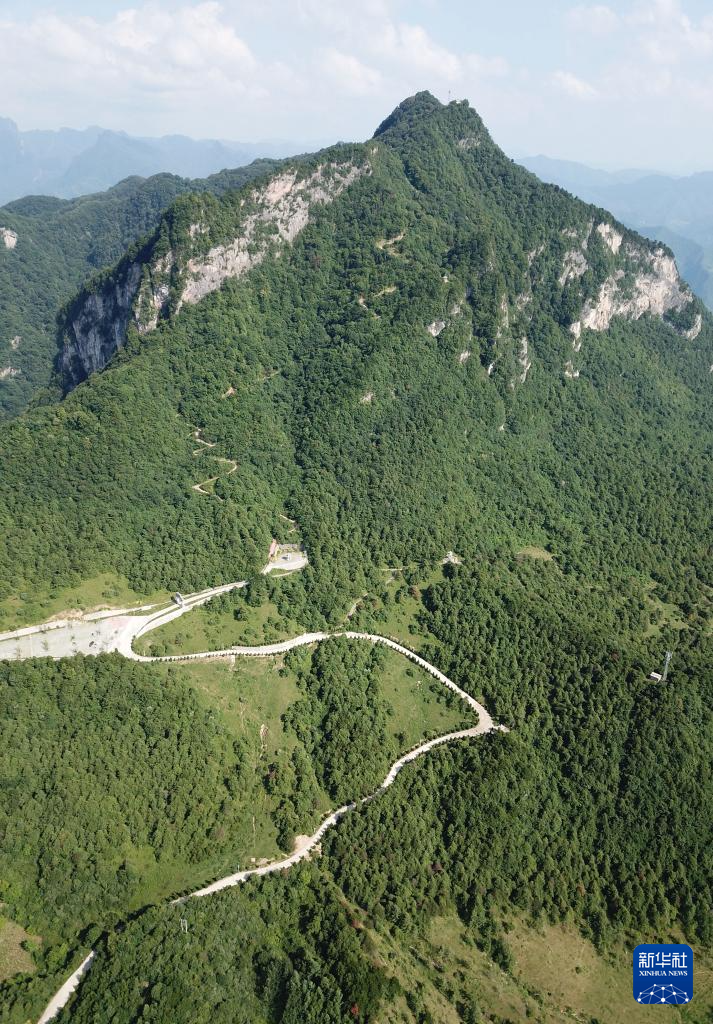 7月14日拍攝的青泥嶺主峰鐵山和鄉(xiāng)村道路(無(wú)人機(jī)照片)。新華社記者 馬寧 攝