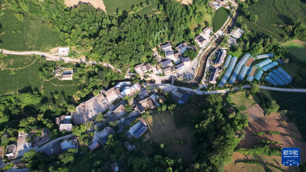 7月14日拍攝的青泥嶺腳下的青泥村(無(wú)人機(jī)照片)。新華社記者 陳斌 攝
