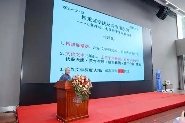 葉舒憲強(qiáng)調(diào)教授“四重證據(jù)法”對(duì)文明互鑒的推動(dòng)作用,國(guó)際影響持續(xù)擴(kuò)大。葉教授領(lǐng)銜的“神話學(xué)文庫(kù)”(第三輯)新書(shū)發(fā)布會(huì)在12月6日于上海交通大學(xué)盛大發(fā)布;“文庫(kù)”項(xiàng)目計(jì)劃出版71部著作,現(xiàn)已出版66本,余下5本將于2026年出版完成,將構(gòu)建起覆蓋全球25大文明圈的神話研究網(wǎng)絡(luò)。這是將“四重證據(jù)法”進(jìn)行跨文明比較研究的首次探索,揭示不同神話體系共通的“根性邏輯”。