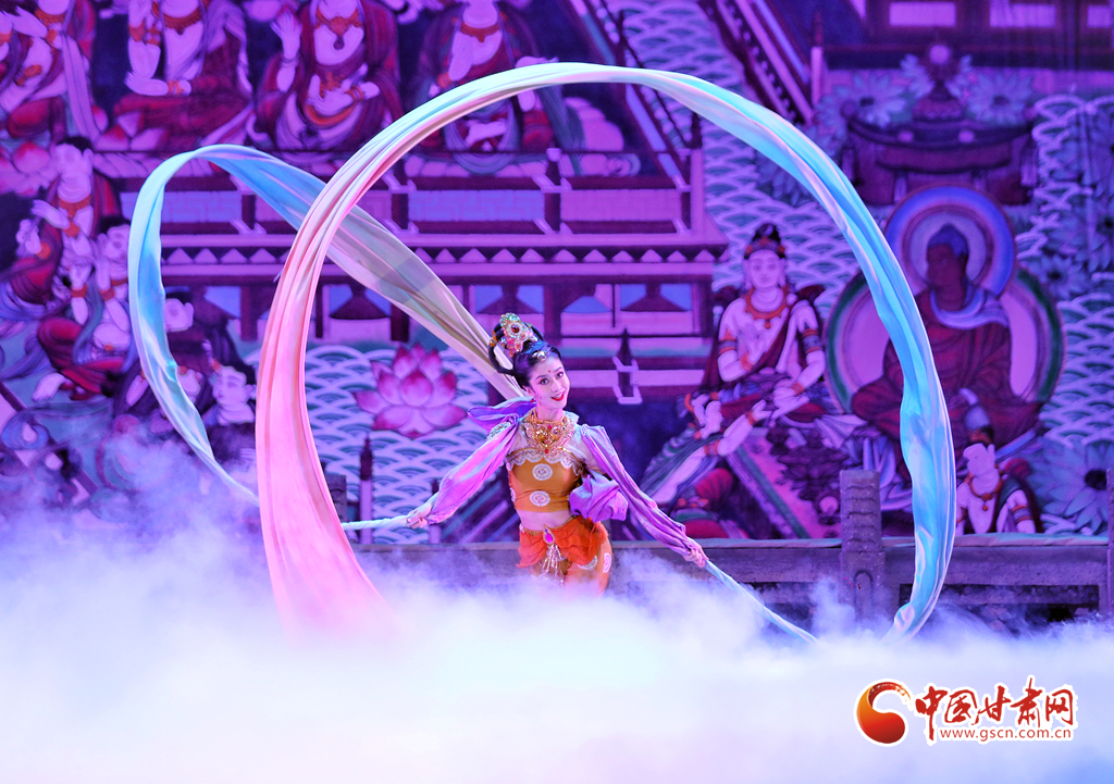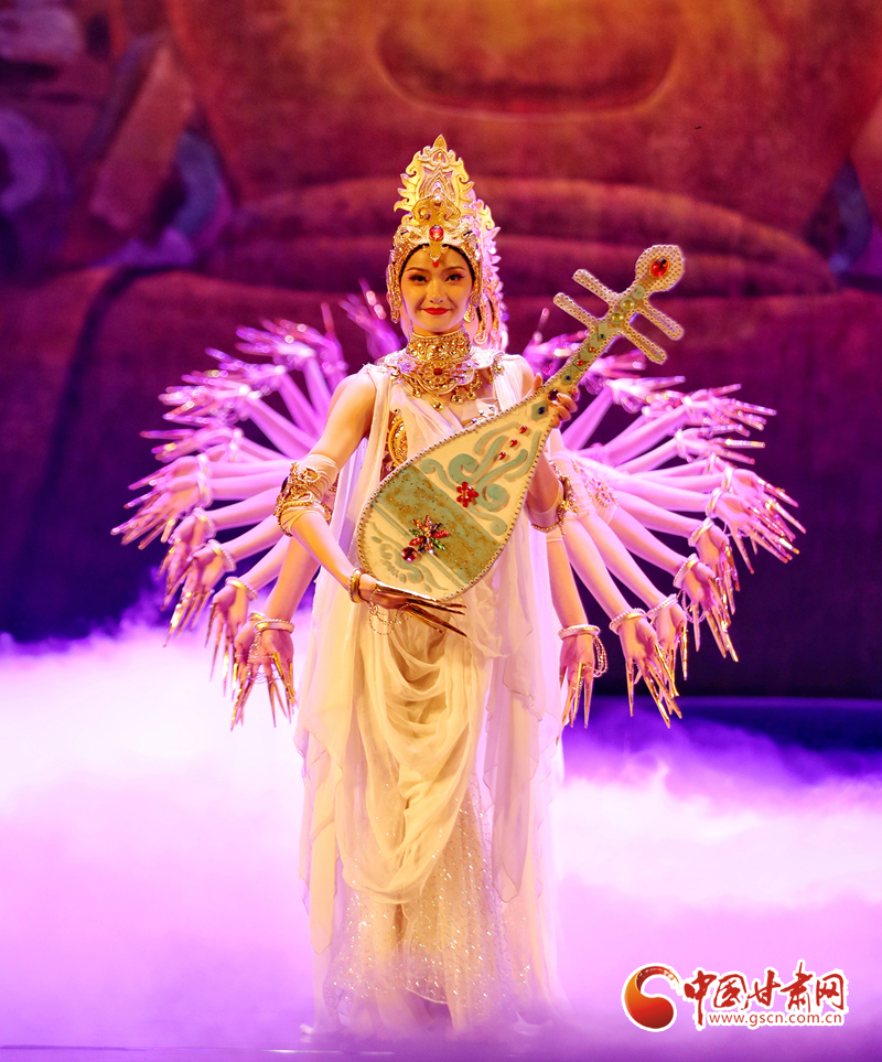 絲路漫漫、駝鈴聲聲……演出當(dāng)晚,演員們以精湛投入的表演,唱響了絲綢之路的友誼贊歌,同時也為觀眾展開了一幅“活的敦煌壁畫”,從敦煌彩塑和壁畫中提煉出的“千手觀音”“反彈琵琶”“憑欄仙女舞”“霓裳羽衣舞”等舞蹈在舞臺上一一呈現(xiàn),深深打動了現(xiàn)場觀眾,贏得無數(shù)掌聲與喝彩。