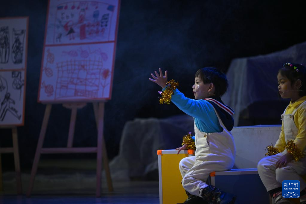 當日,北京兒童藝術(shù)劇院語言與表達班在北京舉行匯報演出。孩子們通過戲劇課堂的啟發(fā),圍繞“幸福是什么”這一主題,以原創(chuàng)詩歌的形式開展表演。
