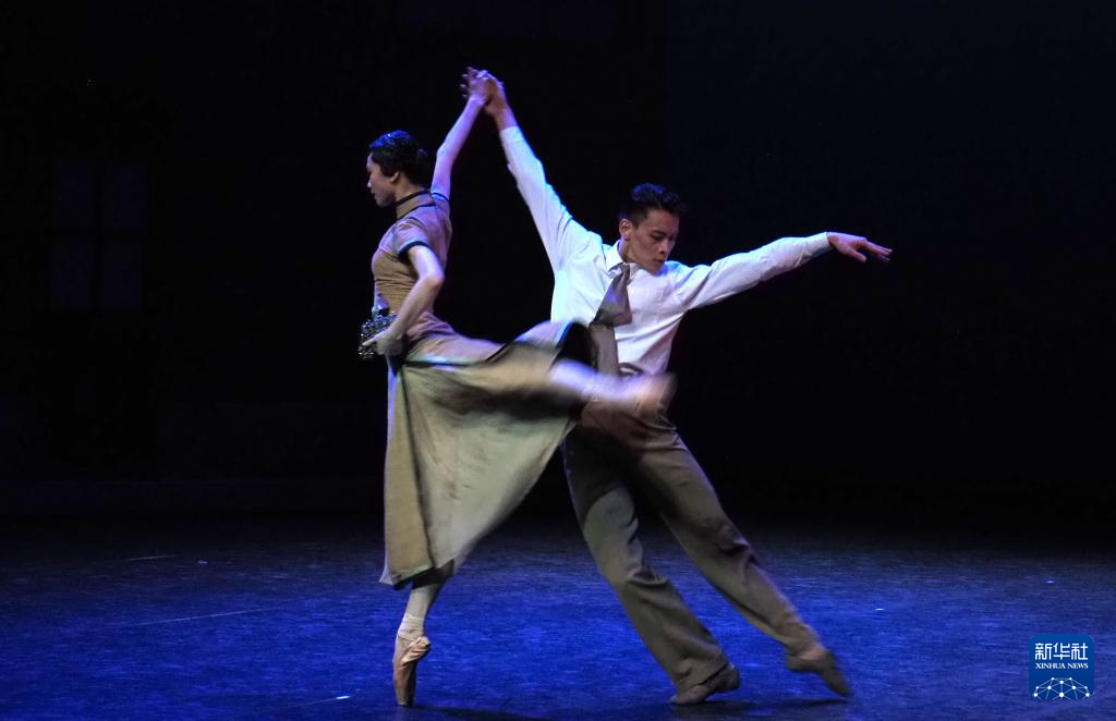 2月22日,上海芭蕾舞團(tuán)演員在演出季發(fā)布會現(xiàn)場(上海國際舞蹈中心實(shí)驗(yàn)劇場)演出芭蕾舞劇《花樣年華》片段。新華社記者任瓏攝