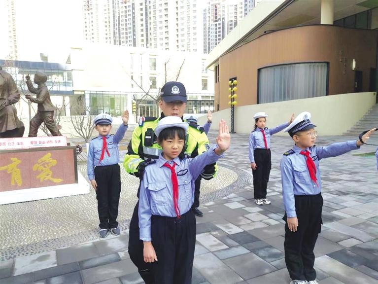 交警課間進(jìn)校園 教孩子們交通手勢(shì)操