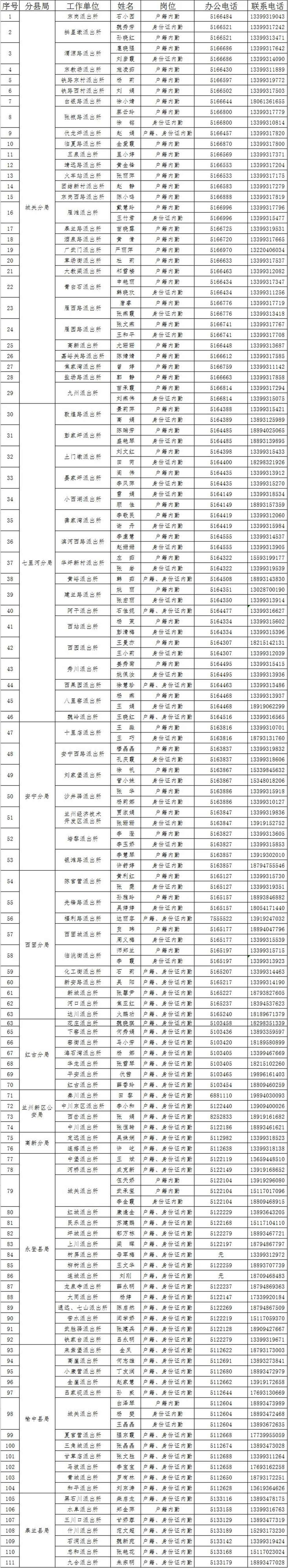 蘭州公安公布全市戶籍業(yè)務(wù)辦理預約電話