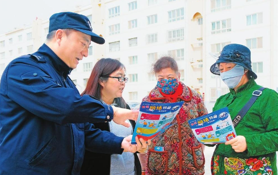 5月16日,嘉峪關(guān)公安民警在居民小區(qū)開展防范電信網(wǎng)絡(luò)詐騙宣傳活動(dòng)