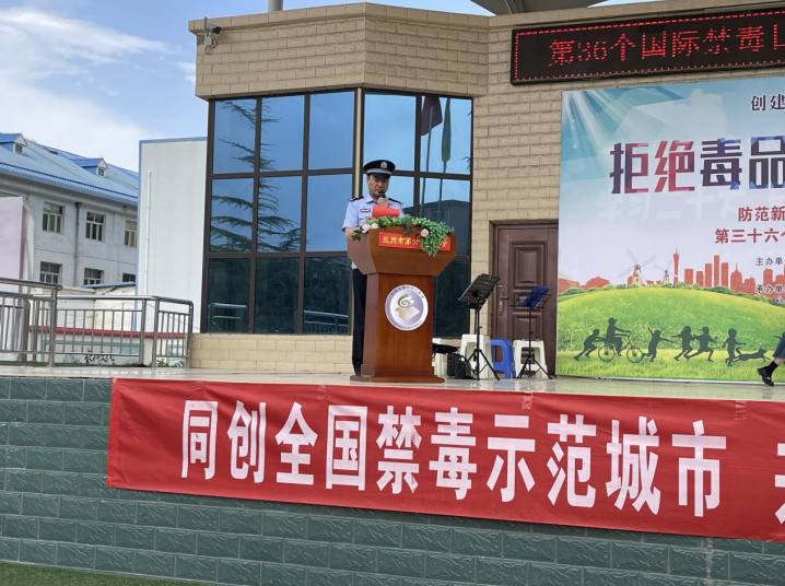 活動以化工街派出所教導(dǎo)張華鵬向廣大師生、參與活動人員領(lǐng)誓拉開帷幕,宣言鏗鏘有力,承諾擲地有聲,一句句誓言,道出了大家對拒絕毒品、遠(yuǎn)離毒品的決心。西柳溝街道黨工委副書記袁得琴講話中對全體到場人員作出倡議,希望大家從自身做起積極加入到全社會禁毒宣傳志愿者隊伍中,營造“禁毒斗陣、人人參與”的良好社會氛圍。