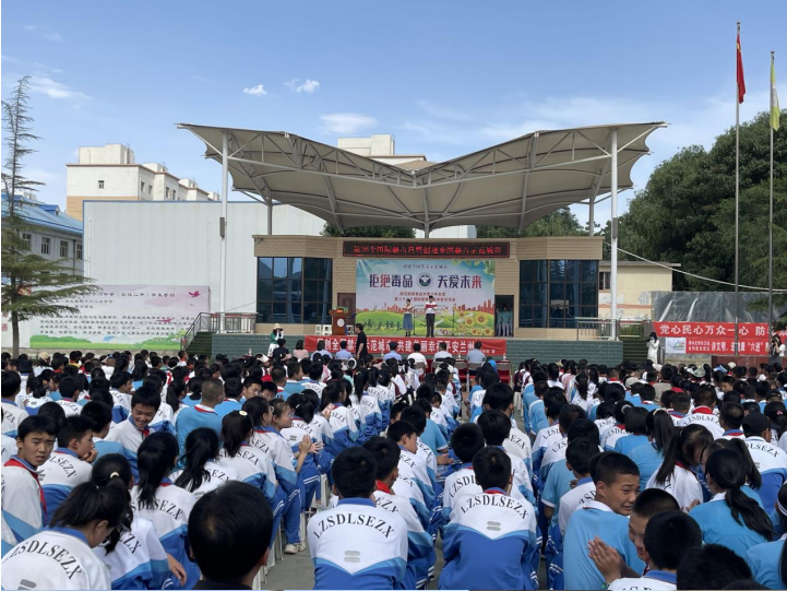 活動現(xiàn)場,通過擺放禁毒知識宣傳展架、仿真毒品模型、宣傳資料,懸掛橫幅,電子屏滾動播放宣傳語等方式烘托了一場濃厚禁毒宣傳氛圍;禁毒知識競賽搶答,禁毒知識謎語競猜,看圖識毒品、“趕走毒品”小游戲等形式多樣、內(nèi)容豐富、突出特色、注重實效的宣傳活動、形態(tài)逼真的毒品仿真模型,吸引青少年有了進(jìn)一步深入了解毒品的形狀、種類、危害的好奇心,禁毒志愿者乘勢對“開心水”“奶茶”“大麻”“跳跳糖”“郵票”等善于偽裝,誘惑性和危害性極強的新型毒品進(jìn)行重點講解,提醒大家要提高自我保護(hù)意識和能力,提防新型毒品的誘惑,遠(yuǎn)離不良娛樂場所,不接受陌生人提供的食物和飲品,為同學(xué)們上了一堂別開生面的禁毒教育課。同學(xué)們將自己所學(xué)、所看、所想、所聽的禁毒知識積極參與討論互動,切實提高了大家對毒品特別是新型毒品的辨識能力。同時,活動現(xiàn)場還通過給同學(xué)們發(fā)放“致家長的一封信”的方式,發(fā)動在校學(xué)生“小小宣傳員”的作用,將禁毒知識說給身邊的朋友、自己的家長聽,從而傳播禁毒種子,匯聚全民禁毒力量,共同推進(jìn)全國禁毒示范城市創(chuàng)建工作向深發(fā)展。