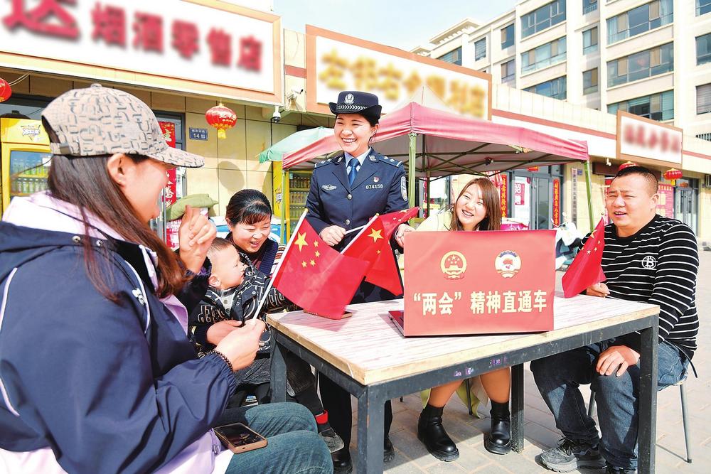 3月12日,臨澤縣公安局工業(yè)開發(fā)區(qū)派出所民警走街入戶,與群眾共同學(xué)習(xí)全國兩會(huì)精神。新甘肅·甘肅法治報(bào)通訊員安學(xué)海攝