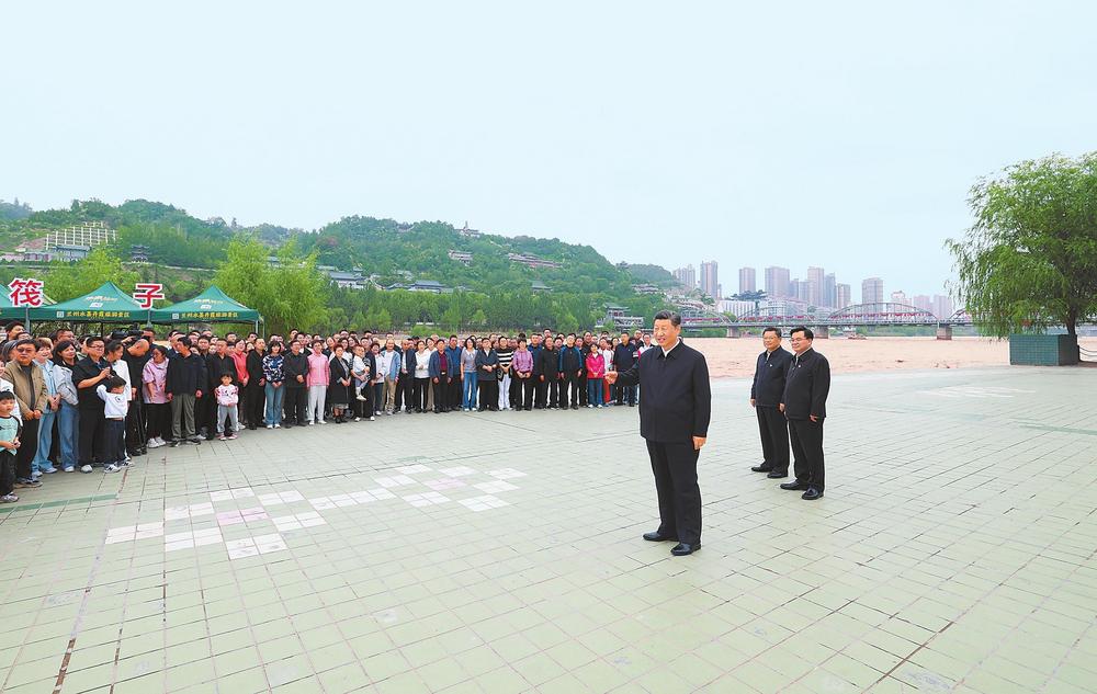 9月10日至13日,中共中央總書記、國(guó)家主席、中央軍委主席習(xí)近平在甘肅考察。這是11日下午,習(xí)近平在黃河蘭州中山橋段考察時(shí),同在場(chǎng)的干部群眾親切交流。新華社記者王曄