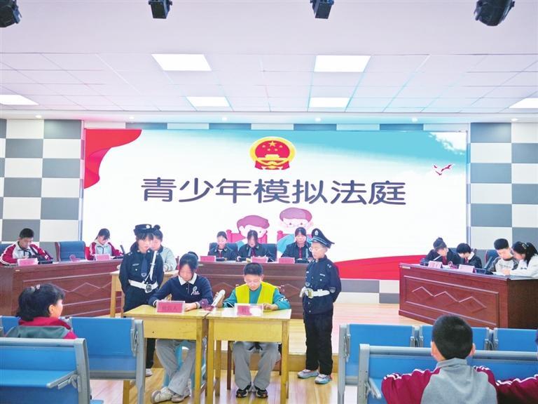 首先,在李青源律師的悉心指導(dǎo)和同學(xué)們的踴躍參與下,經(jīng)過(guò)前期的認(rèn)真彩排,同學(xué)們以模擬法庭的形式現(xiàn)場(chǎng)模擬了一起因校園欺凌導(dǎo)致的刑事訴訟案件。參與庭審活動(dòng)的學(xué)生們沉浸式、體驗(yàn)式、互動(dòng)式參與其中,有序扮演著審判長(zhǎng)、公訴人、辯護(hù)人等角色?;顒?dòng)也讓在場(chǎng)的其他同學(xué)認(rèn)識(shí)學(xué)習(xí)了法庭審判的全過(guò)程,身臨其境感受了校園欺凌會(huì)產(chǎn)生的嚴(yán)重后果,以及法律的威嚴(yán),引導(dǎo)青少年學(xué)會(huì)用法律保護(hù)自己。