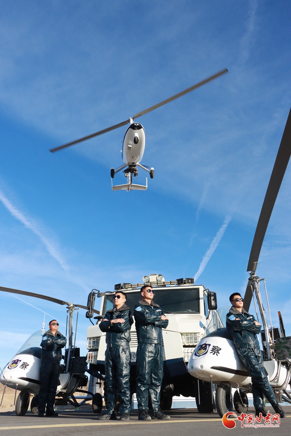甘肅出入境邊防檢查總站酒泉邊境管理支隊利用旋翼機在馬鬃山邊境管理區(qū)戈壁荒漠地區(qū)開展空中巡防任務(wù)。該隊的成立成為甘肅出入境邊防檢查總站“科技興警、科技管邊”的一張亮麗名片,標(biāo)志著“智慧邊境、數(shù)字邊境”平安邊境體系的初步形成。“飛天警隊”是全國移民管理系統(tǒng)首支旋翼機隊成立于2020年7月,由9名民警組成,平均年齡不超過30歲。