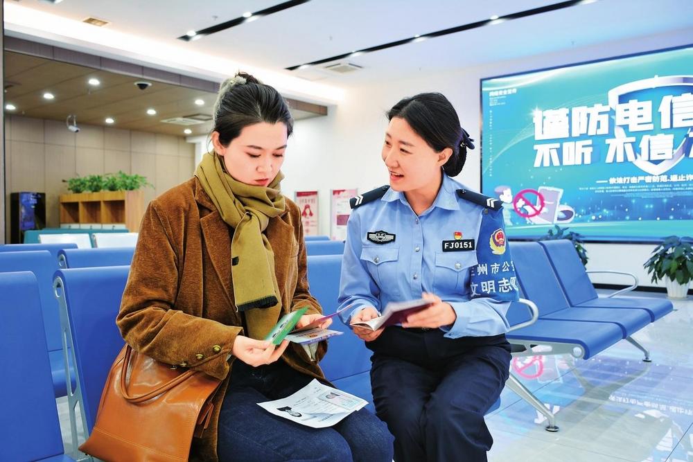 12月4日上午,蘭州市公安局出入境辦證大廳輔警方海燕向市民介紹出入境業(yè)務(wù)簡化辦理流程等事項(xiàng)。新甘肅·甘肅法治報(bào)記者張瑞軍攝