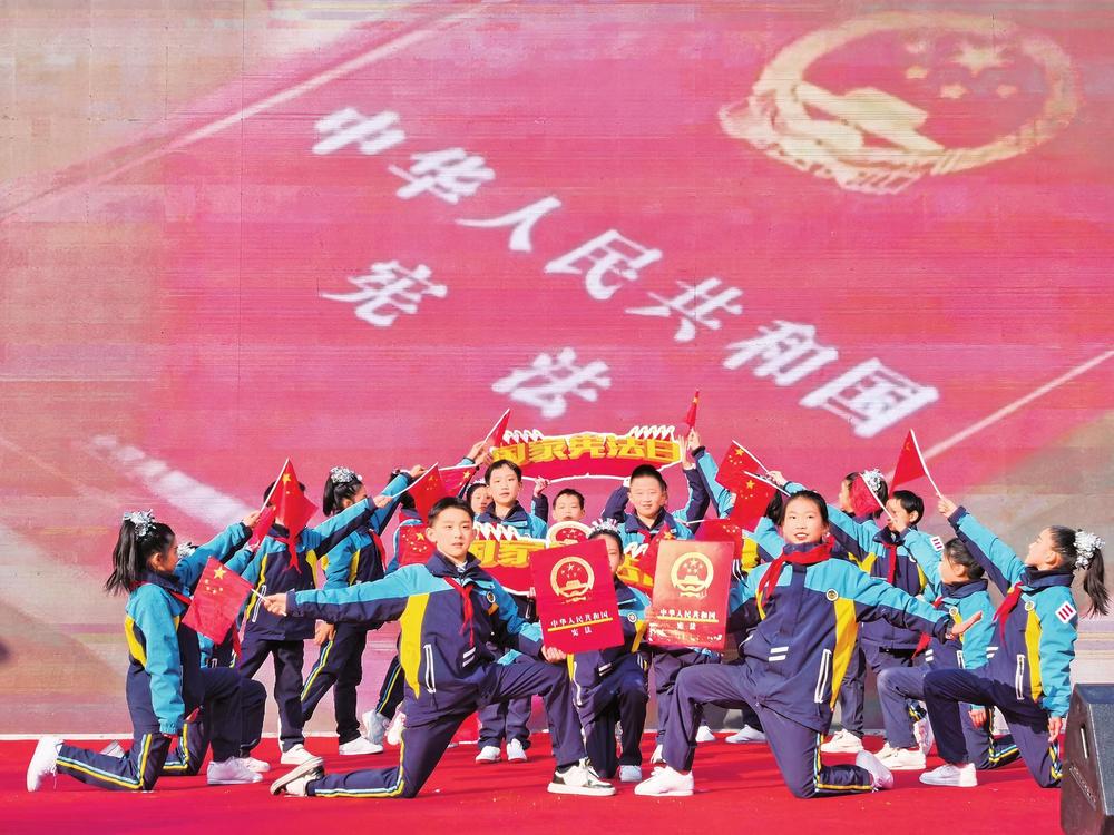 張掖路小學(xué)學(xué)生演出情景歌舞《憲法伴我們成長》。12月4日,蘭州市在市民廣場舉行2024年“12·4”國家憲法日暨憲法宣傳周活動(dòng)。 新甘肅·甘肅法治報(bào)記者楊丹攝