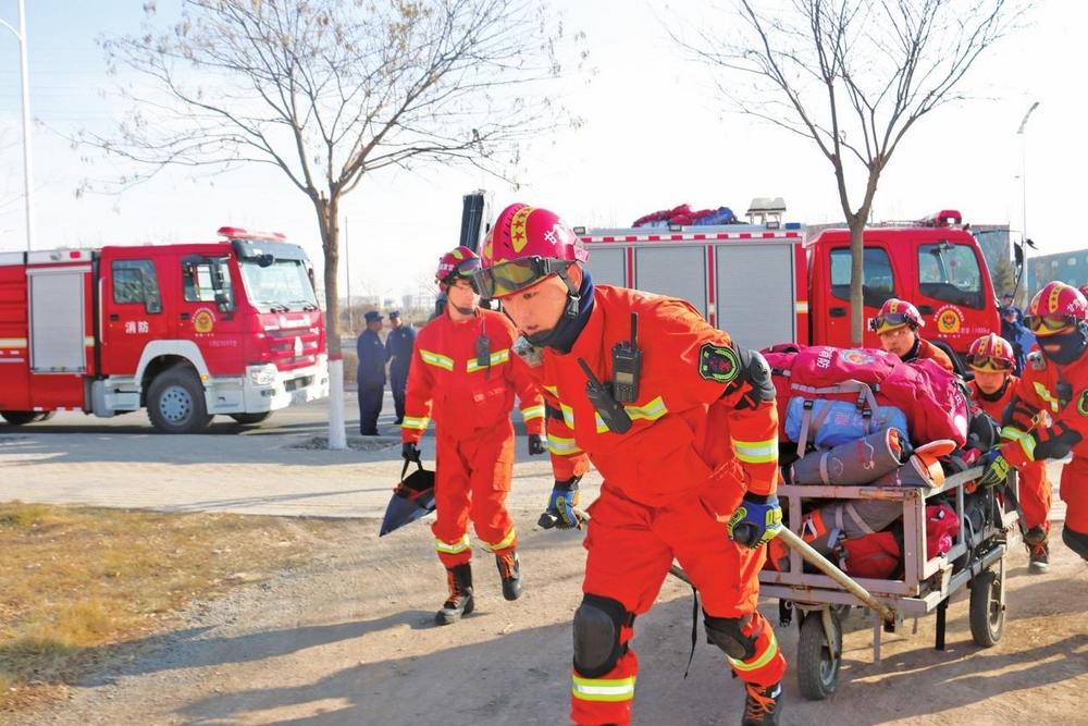 地震救援拉動(dòng)訓(xùn)練中的劉學(xué)法?!√m州新區(qū)消防救援支隊(duì)供圖