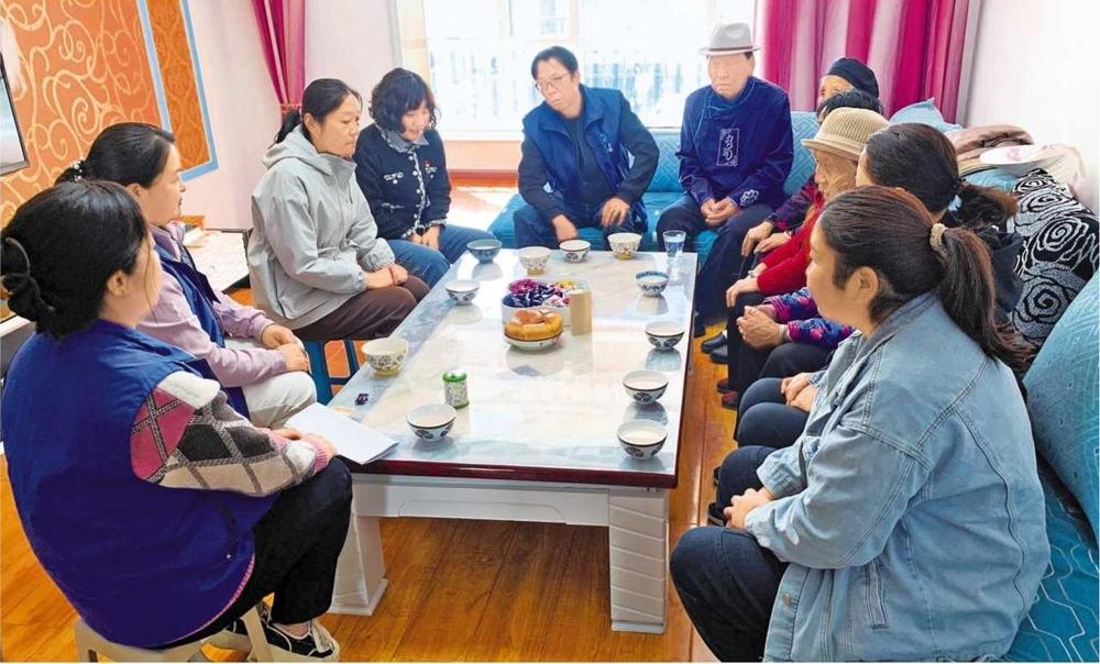 肅北縣紫亭社區(qū)召開奶茶議事會,共同協(xié)商解決小區(qū)內(nèi)飛線充電安全隱患問題(2024年5月10日拍攝)。 肅北縣委政法委供圖