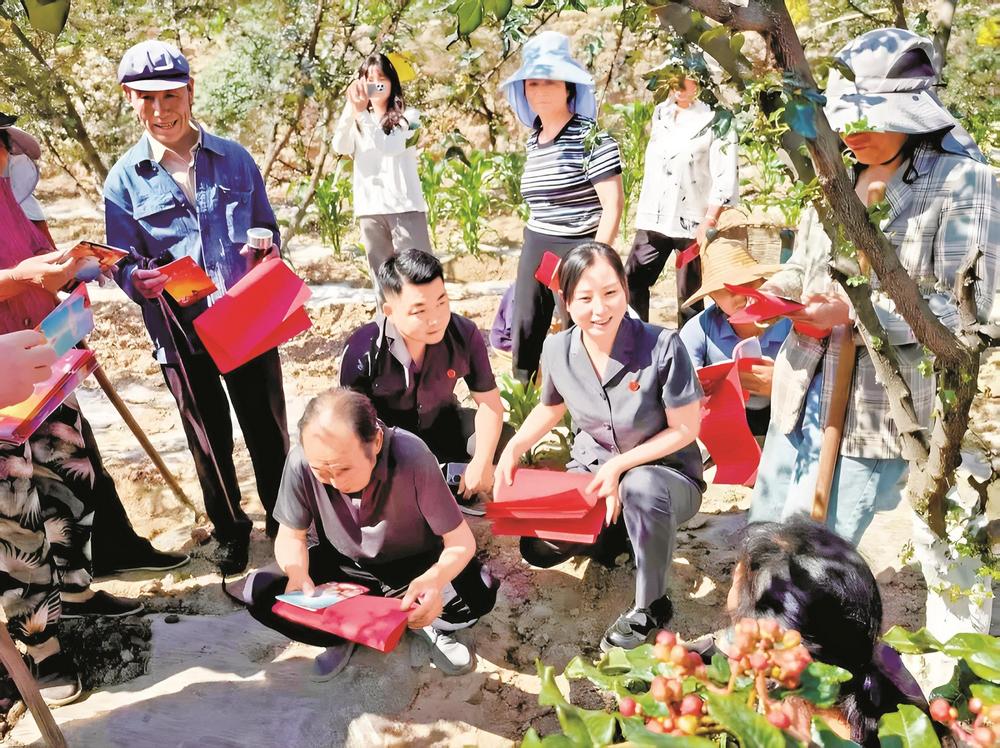 安化法庭干警走進(jìn)花椒種植園,與村民圍坐交流,現(xiàn)場答疑解惑。 武都區(qū)法院供圖