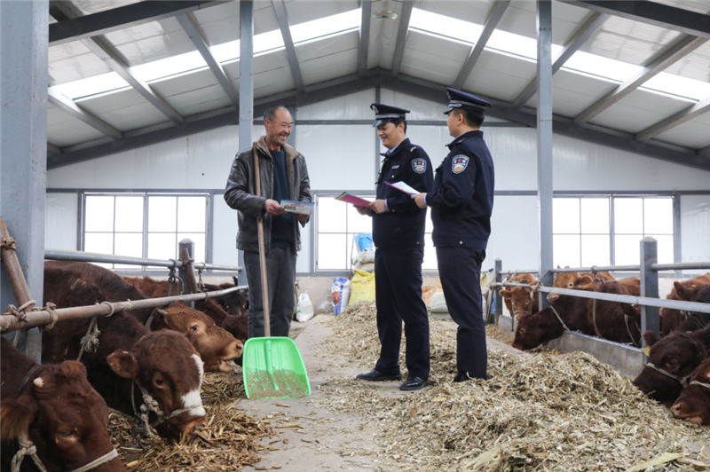 ▲平?jīng)鍪泄簿轴轻挤志终优沙鏊褫o警深入轄區(qū)紅牛養(yǎng)殖基地,開展針對性普法宣傳活動,進(jìn)一步筑牢轄區(qū)紅牛養(yǎng)殖產(chǎn)業(yè)法治防線,提升廣大養(yǎng)殖戶的法律意識。(張鏡鏡 攝)