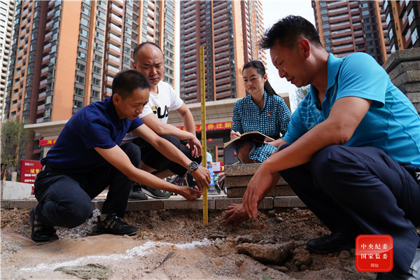 云南省昆明市西山區(qū)駐村一線紀檢監(jiān)察員對城中村改造道路施工質量進行督查,確保路基建設質量,建人民滿意工程。(云南省昆明市西山區(qū)紀委監(jiān)委 尹彪 攝)