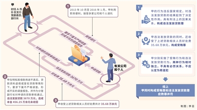 楊一龍:根據(jù)刑法第一百八十六條規(guī)定,違法發(fā)放貸款罪是指銀行或者其他金融機(jī)構(gòu)的工作人員違反國家規(guī)定發(fā)放貸款,數(shù)額巨大或者造成重大損失的行為。本案中,對于甲接受有關(guān)公司和個人請托,在明知其借款用途不真實、貸款資料虛假或冒名貸款等情況下仍審核通過貸款,明顯違反國家法律法規(guī)不存在爭議。但有觀點認(rèn)為,甲審核通過貸款僅為發(fā)放貸款環(huán)節(jié)中的一個非決定性環(huán)節(jié),不應(yīng)讓甲承擔(dān)違法發(fā)放貸款的刑事責(zé)任,如果認(rèn)定其構(gòu)成違法發(fā)放貸款罪,那么就應(yīng)追究貸款環(huán)節(jié)所有人的罪責(zé)。