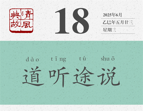 道路上人來人往,來去匆匆,你圖一時(shí)之快,我為一時(shí)之歡,說者不妨一說,聽者也不妨一聽。而且,越是離奇古怪,越是興致勃勃;越是聳人聽聞,越是神神道道。很快,假的就會(huì)被當(dāng)成真的,陳年往事就會(huì)被當(dāng)成時(shí)下新聞。后人即以“道聽途說”為典,比喻毫無根據(jù)的傳聞。司馬光《論兩浙不宜添置弓手狀》:“吳人輕怯,易惑難曉,道聽途說,眾情鼎沸。”