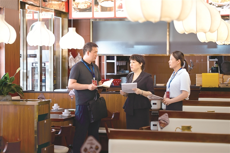 河南省漯河市郾城區(qū)紀委監(jiān)委圍繞公款吃喝、違規(guī)接受管理服務對象宴請等違反中央八項規(guī)定精神問題開展監(jiān)督檢查,一嚴到底狠剎歪風邪氣。圖為近日,該區(qū)紀檢監(jiān)察干部在轄區(qū)某飯店了解相關(guān)情況。王曉 攝