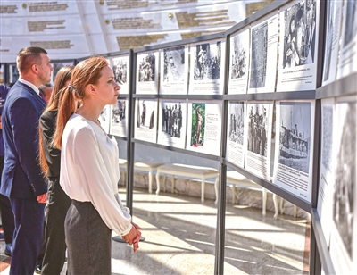 定格共同的勝利,重溫跨越時(shí)空的二戰(zhàn)記憶。“銘記歷史 開創(chuàng)未來”——紀(jì)念中國(guó)人民抗日戰(zhàn)爭(zhēng)暨世界反法西斯戰(zhàn)爭(zhēng)勝利80周年圖片展正在白俄羅斯國(guó)立偉大衛(wèi)國(guó)戰(zhàn)爭(zhēng)歷史博物館展出。圖為觀眾在參觀展覽。新華社記者 張超群 攝