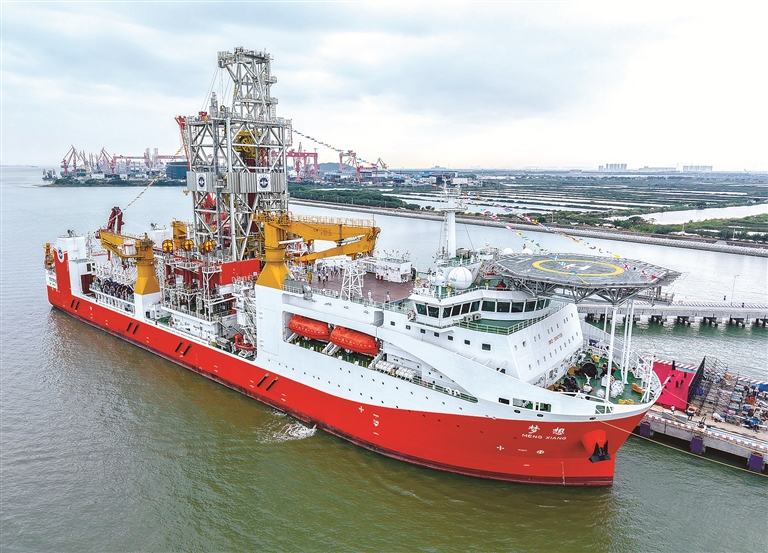 “十四五”時期,我國持續(xù)加強關(guān)鍵核心技術(shù)攻關(guān)和成果應(yīng)用,加快高端裝備、先進制造等領(lǐng)域關(guān)鍵技術(shù)攻關(guān),推動傳統(tǒng)產(chǎn)業(yè)向高端化、智能化、綠色化轉(zhuǎn)型。圖為擁有最大11000米的鉆深能力、我國自主設(shè)計建造的首艘大洋鉆探船“夢想”號,該船于“十四五”時期正式入列(資料圖片)。新華社記者 劉大偉 攝