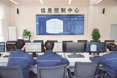 圖①:在中儲糧四川新津直屬庫信息控制中心,倉儲保管員通過在線監(jiān)控系統(tǒng)查看倉儲作業(yè)情況。