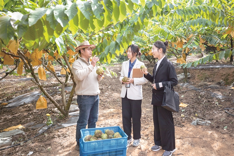 廣東省四會市紀委監(jiān)委把“百千萬工程”作為政治監(jiān)督的“頭號工程”來抓,圍繞產(chǎn)業(yè)發(fā)展、土地資金要素保障、干部作風等開展精準監(jiān)督。圖為近日,該市紀委監(jiān)委干部到逕口鎮(zhèn)釋迦果種植基地走訪了解有關情況。胡源 攝