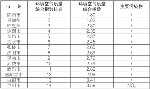 甘肅省生態(tài)環(huán)境廳發(fā)布14個(gè)城市9月份環(huán)境空氣質(zhì)量排名情況