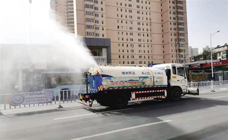 原標(biāo)題:加派作業(yè)車輛 增加保潔頻次 保持路面濕潤