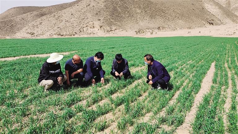 近日,記者在白崖、豐水村看到,農(nóng)業(yè)技術(shù)人員正實(shí)地查看胡麻、玉米等新品種示范區(qū)種植田塊,并向農(nóng)戶了解生產(chǎn)與管理情況,現(xiàn)場(chǎng)指導(dǎo)田地管理。