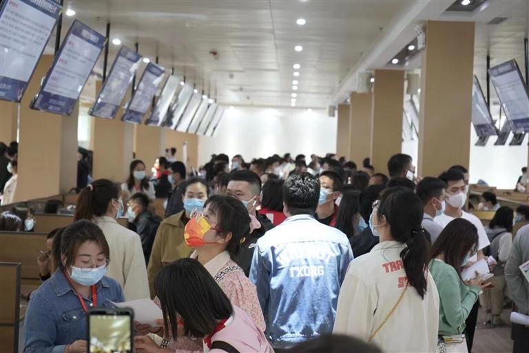 招聘會(huì)現(xiàn)場人潮涌動(dòng) 蘭州日?qǐng)?bào)社全媒體記者 陳夢圓 攝