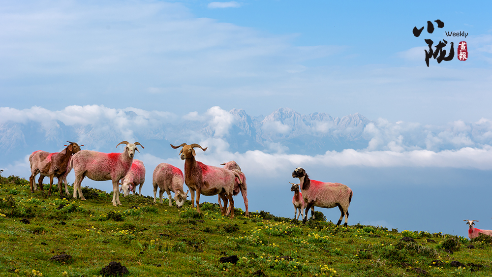 山頂被譽(yù)為草原白珍珠的天祝白牦牛和羊群云中漫步,云下蔥蘢牧場(chǎng)若隱若現(xiàn),一幅水墨山水畫卷徐徐呈現(xiàn)在眼前。