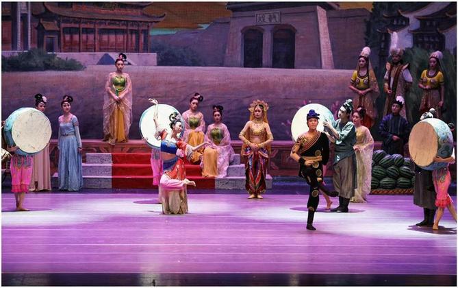 舞劇《絲路花雨》取材于敦煌莫高窟壁畫(huà)藝術(shù),融合了中國(guó)古典舞、印度舞、黑巾舞、波斯馬鈴舞、波斯酒舞、土耳其舞、盤(pán)上舞、新疆舞等各種藝術(shù)形式。該劇首創(chuàng)于1979年,甘肅省歌舞劇院于2008年修排了新版《絲路花雨》,并不斷進(jìn)行創(chuàng)新。