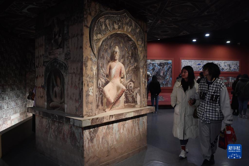 4月5日,觀眾在敦煌研究院蘭州分院敦煌藝術(shù)館參觀。新華社記者 陳斌 攝