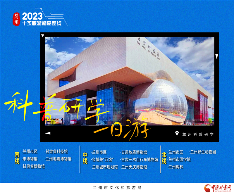 6.蘭州科普研學(xué)1日游。蘭州博物館有很多,可謂是品類齊全。綜合類博物館如省博、市博自不用說(shuō),中國(guó)旅游標(biāo)志“馬踏飛燕”原件陳列真的不想去看看?各類專門博物館也是非常齊全,秦腔博物館、黃河橋梁博物館、城市規(guī)劃館、自行車博物館、地震博物館等……“蘭州科普研學(xué)1日游”三條線,分別為南線、中線和北線。