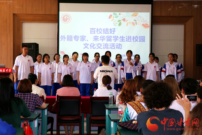 中國甘肅網(wǎng)6月26日訊 (西北角·中國甘肅網(wǎng)記者 張?zhí)m琴)6月25日下午,“百校結(jié)好”倡議之“外籍專家、來華留學(xué)生進(jìn)校園”文化交流活動(dòng)在蘭州交通大學(xué)附屬中學(xué)舉行。來自蘭州交通大學(xué)國際交流學(xué)院的外籍教師、來華留學(xué)生與該校師生熱情的互動(dòng)交流,為今年“百校結(jié)好”倡議系列活動(dòng)締結(jié)友誼之花再結(jié)“碩果”。